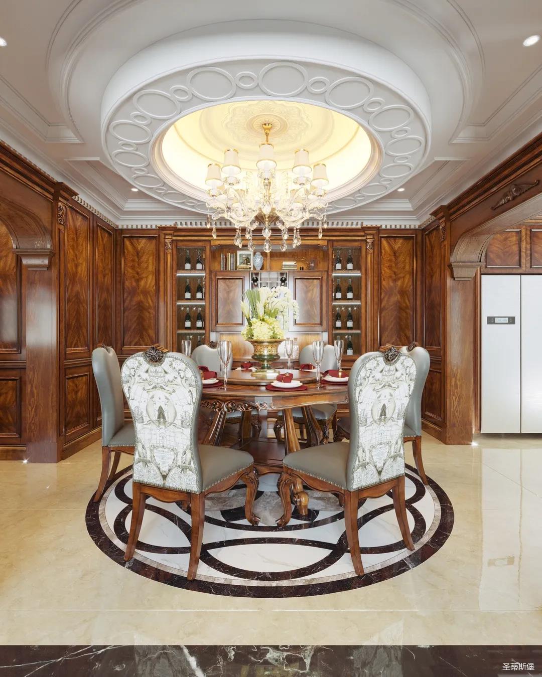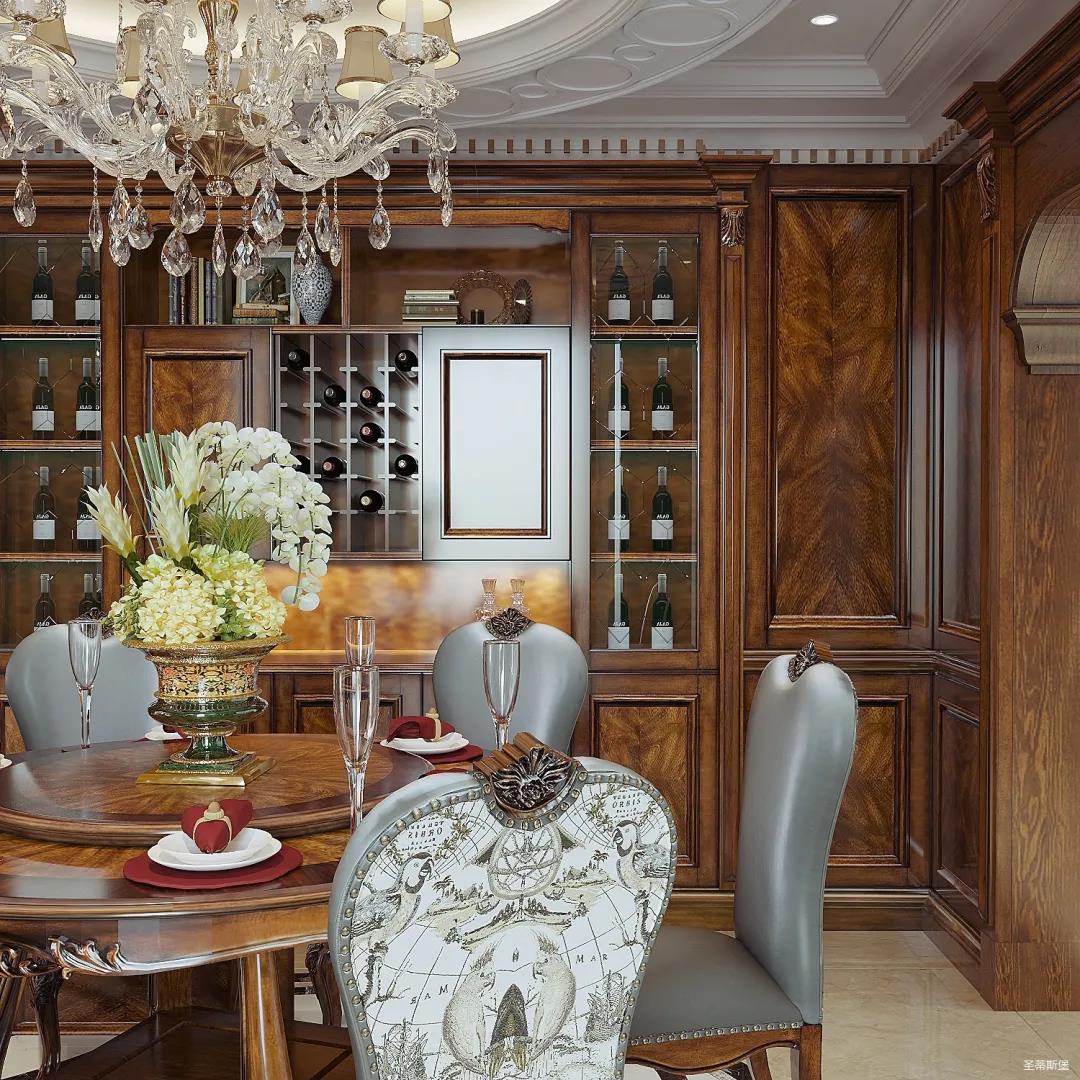 客厅重点强调优雅的雕刻和舒适的设计,在保留了美式家具色泽和质感的同时,又注意现代生活空间。大开窗将光线引入客厅,傍晚时分,当落日余晖洒进屋内,犹如在塞纳河畔欣赏落日的浪漫,温馨又抚慰人心。