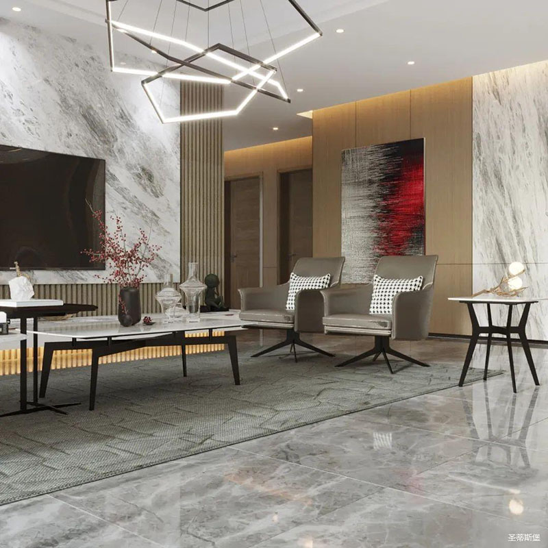 纯美的线条,沉稳的色泽,为空间定下了低调而华丽的基调。浑然天成的实木与岩板纹理,让角几荡漾出一幅“水光潋滟”的泼墨油画。三两红枝点缀,表达着“枝头并蒂祝吉祥”的美好祝愿。光影透过极简金属几脚,折射出一种隐藏的优雅气质。大小、高低不一的天然材质角几组合在一起,时尚又个性,不仅便于移动,还表现的灵活且轻巧。