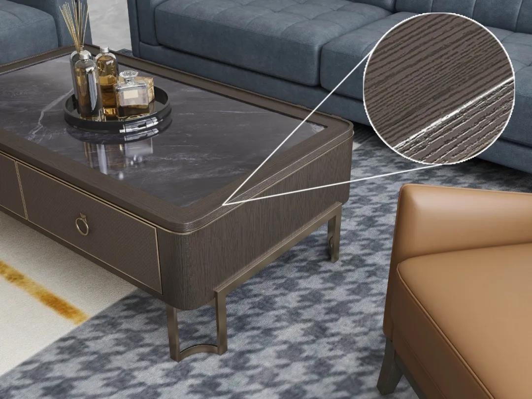 如果只是单纯追求外在的简约设计,如上所述,由于其造型线条简单,缺乏装饰形状且装饰元素很少,那么它的装饰性就没这么强,它的感觉更在当下的流行性,而不是长远的装饰性,我们洛斯系列在强调外形简约的同时,讲究内在细节的丰富,科技木皮嵌入与超纤艺术皮革饰面、实木艺术雕刻等,将产品的审美细节提升上来,以表现出更好的美感。没有装饰元素,空间会感到单调,这些具有独特设计甚至极富创意的个性化装饰元素,打破了洛斯在造型简约上带来的单调感与呆板感,将审美周期大幅度的延长。