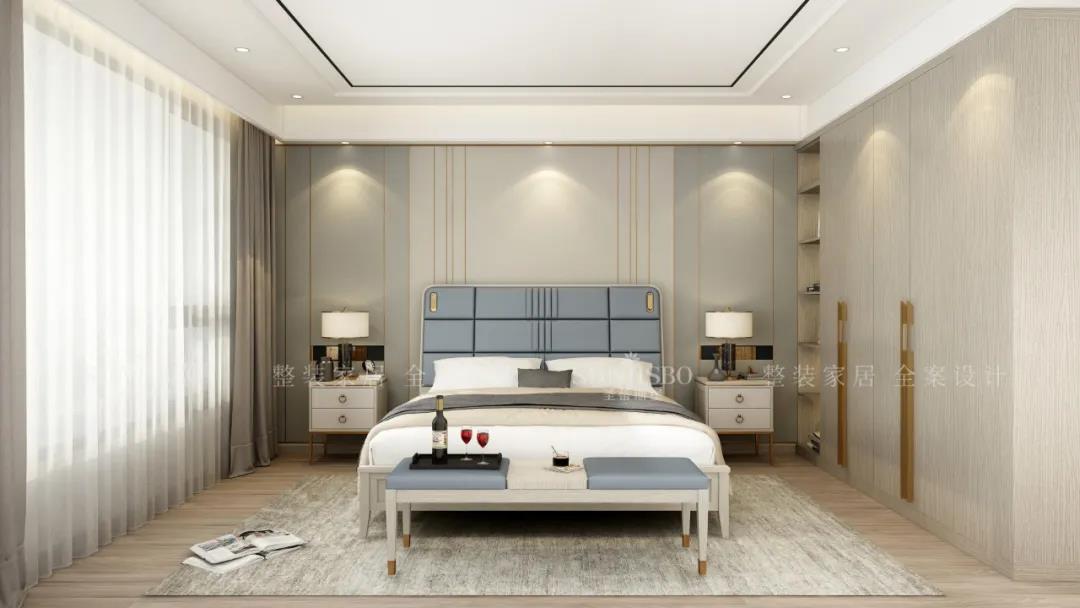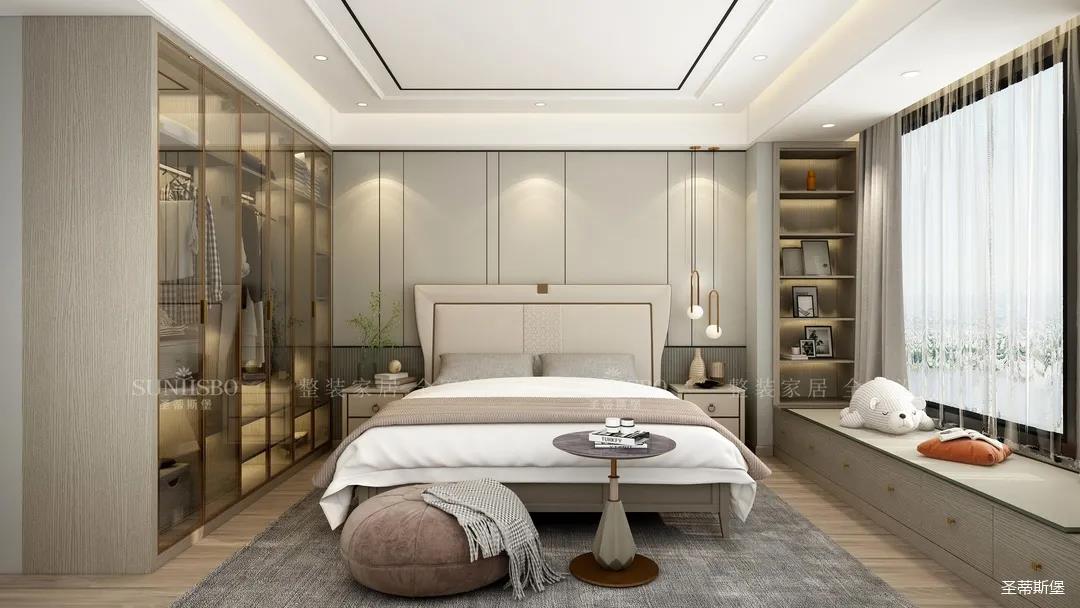 宽阔的就寝区搭配定制实木飘窗,将空间的舒适感达到极致。