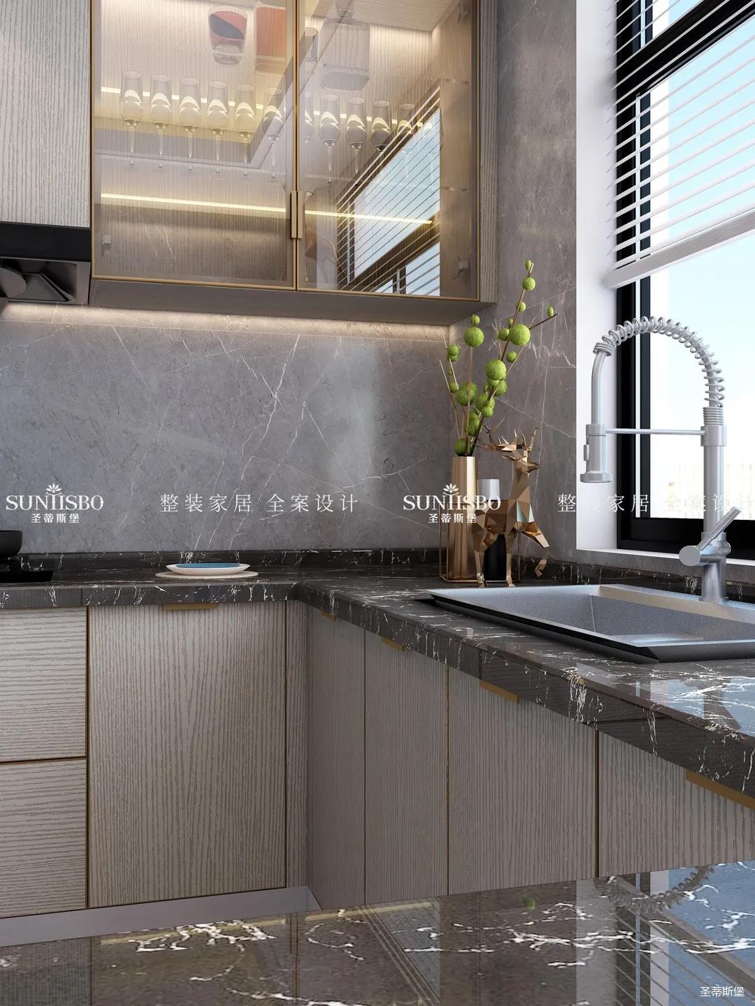 打通厨房与客厅空间,新增西厨区域,满足业主最大程度的生活交流;