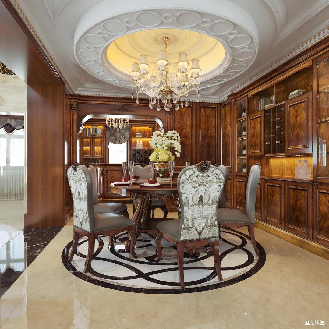 迈进书房,仿佛就来到另一个清丽的世界,抛开身后的尘嚣,恍如隔世般抚慰着辛劳一天的身心。每一物件都经过设计师的精雕细琢,不管是布艺的纹理,木质的雕饰,亦或是真皮的质感,都让大美的豪华一目了然。粗狂中透着柔美的线条,浑厚复古的色调,让空间显得深沉而含蓄,置身其中即可感受到传统的历史痕迹与浑厚的文化底蕴。