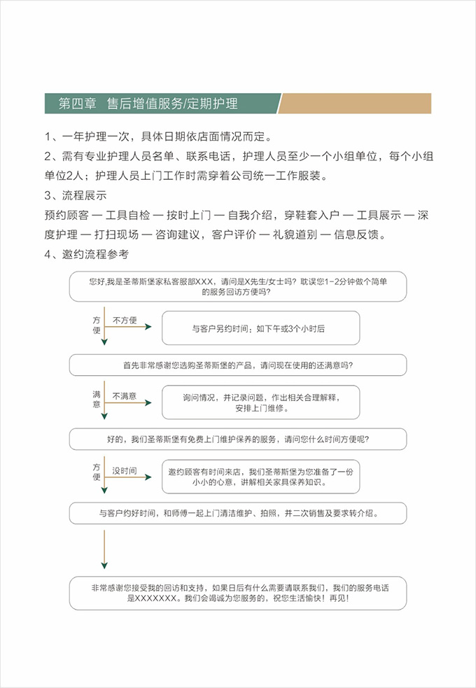 告别之前:告知客户米兰·(milan)中国官方网站全国免费服务电话(售后服务贴)以及保修方式,请客户在《产品配送单》上签名,并填写《配送满意度调查表》后,合影留念。